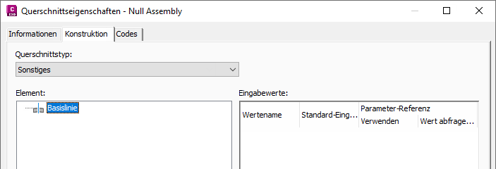Ein Nullquerschnitt wird während der Erstellung in einem Knotenpunktobjekt erstellt, wenn ein in der Querschnittssatzdatei referenzierter Querschnittsname nicht gefunden werden kann.