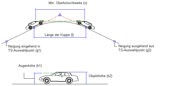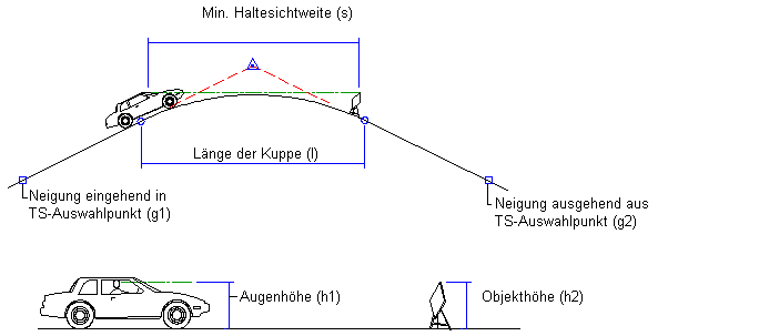 Bei diesem Entwurfsverfahren für Kuppen wird eine minimale Bogenlänge zur Verfügung gestellt. Der Bogen muss so lang sein, dass der Fahrer eines Standardfahrzeugs ein Objekt stets sehen kann, bevor es bei Reisegeschwindigkeit des Entwurfs in maximale Haltesichtweite kommt.