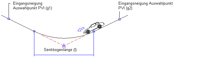Bei diesem Entwurfsverfahren für Wannen wird eine minimale Bogenlänge zur Verfügung gestellt. Der Bogen muss so lang sein, dass Personen in einem Standardfahrzeug, die mit der Geschwindigkeit des Entwurfs durch die Kurve fahren, keinen außergewöhnlichen Massenkräften ausgesetzt sind.