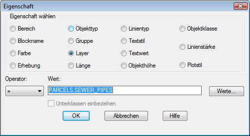 Wählen Sie Layer als Eigenschaft aus. Der Karte werden nur Objekte auf den angegebenen Layern hinzugefügt.