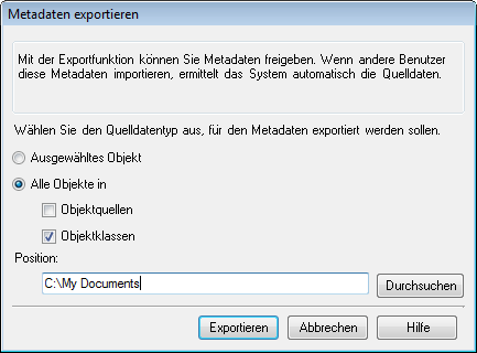Sie haben Metadaten generiert, die Objektklasseninformationen enthalten. Sie haben die Metadaten der Objektklassen exportiert.