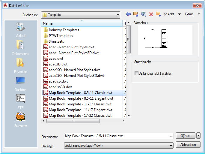Das AutoCAD Map 3D-Toolset wechselt automatisch zum Ordner Template.