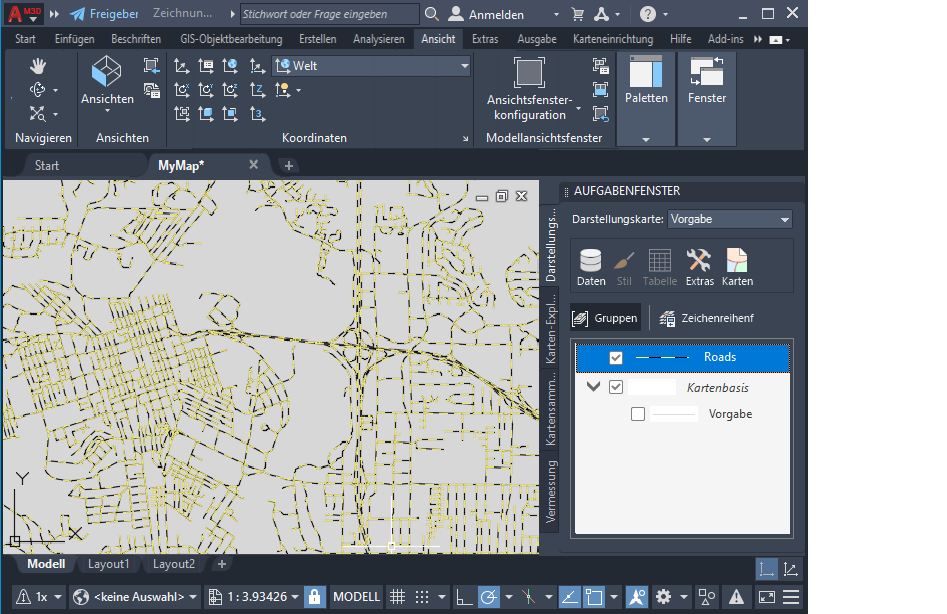 - Wählen Sie in der Darstellungsverwaltung den Layer Roads aus und klicken Sie im Menübereich auf Stil.