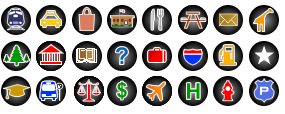 AutoCAD Map 3D-Toolset bietet Beispielsymbole zur allgemeinen Verwendung, z. B. interessante Orte, Beförderungsmittel und lokale Behörden.