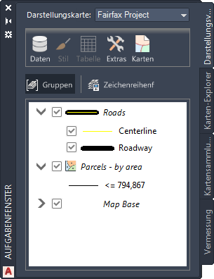 1. Wählen Sie in der Datei SampleMap.dwg in der Darstellungsverwaltung den Layer Parcels aus.