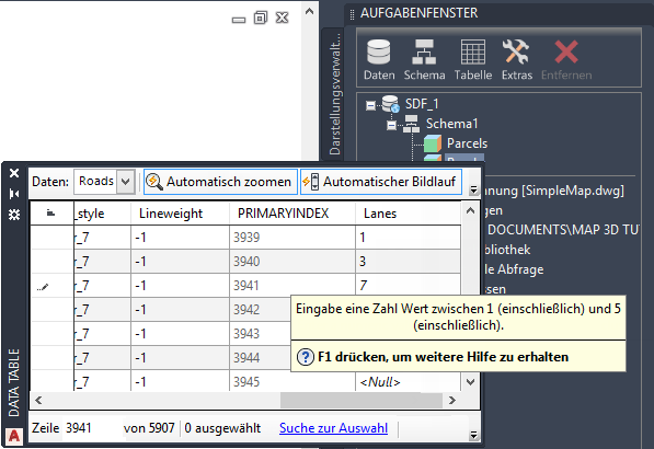 Sie haben eine Verbindung zu der zuvor erstellten SDF-Datei hergestellt und eine neue Eigenschaft zu deren Schema hinzugefügt. Sie haben in der Datentabelle Werte für die neue Eigenschaft eingegeben.