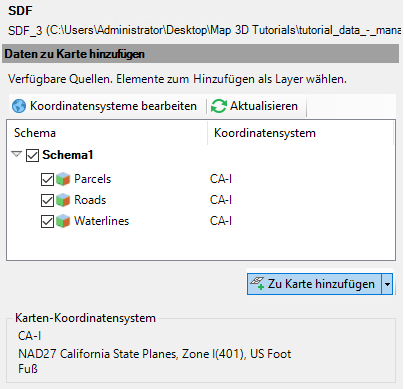 4. Öffnen Sie die SDF-Datei, die Sie in Lektion 1: Konvertieren von Zeichnungslayern in Objektklassen.