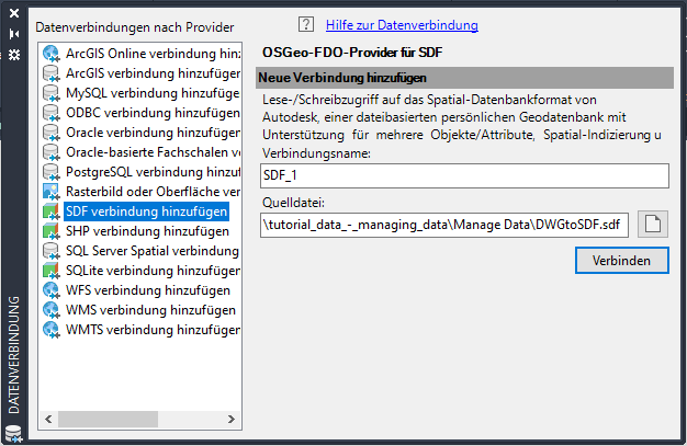 Stellen Sie eine Verbindung zu der erstellten SDF-Datei her.