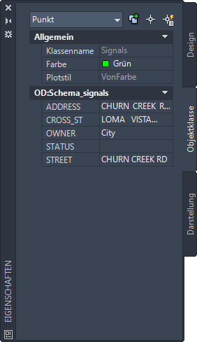 Klicken Sie auf der Eigenschaftenpalette auf die Registerkarte Objektklasse, und sehen Sie sich die Eigenschaften an.