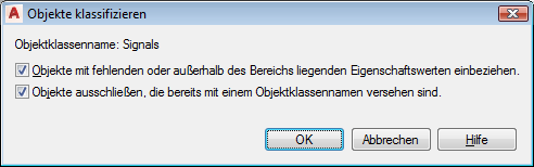 Lassen Sie beide Kontrollkästchen im Dialogfeld Objekte klassifizieren aktiviert, und klicken Sie auf OK.