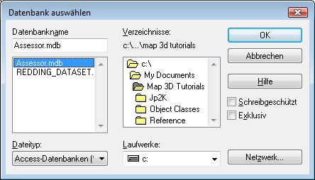 - Wählen Sie im Dialogfeld Datenbank auswählen die Beispieldatei Assessor.mdb aus.