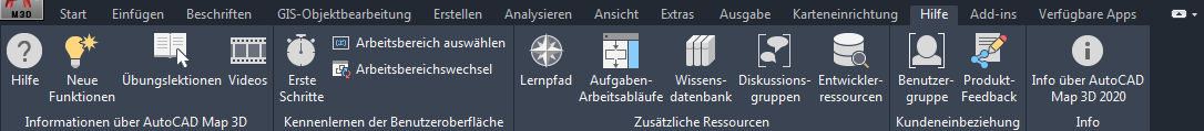 Die Registerkarte Hilfe enthält Links zu den verschiedenen Informationen: