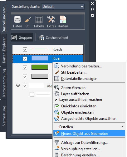 Sie können eine Abfrage auf jeden beliebigen Objektlayer in der Darstellungsverwaltung anwenden.