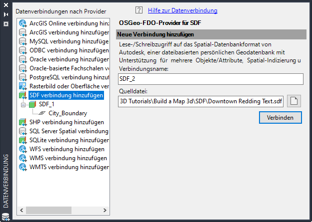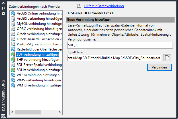 Wählen Sie den SDF-Provider aus, und navigieren Sie zur Beispieldatei CITY_BOUNDARY.SDF.