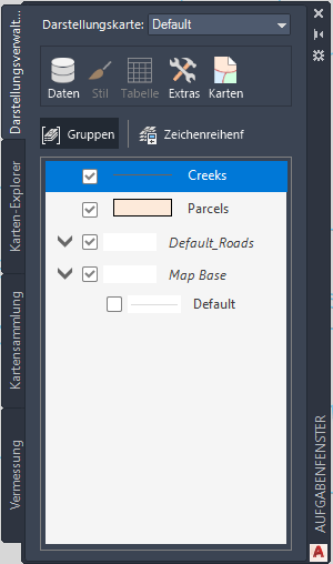 - Rufen Sie im Aufgabenfenster die Darstellungsverwaltung auf, sofern sie noch nicht angezeigt wird.