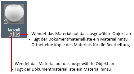 Zum Bearbeiten der Einstellungen können Sie auf ein Materialmuster doppelklicken oder das Kontextmenü verwenden.