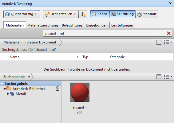 In der Gruppe Materialbibliothek werden die Materialbibliotheken mit Übereinstimmungen für den eingegebenen Suchausdruck angezeigt.