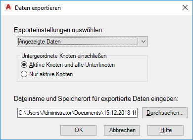 Der Export schließt nur den aktiven Knoten ein.