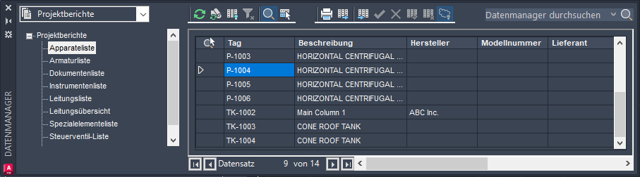 - Klicken Sie in der Dropdown-Liste des Datenmanagers auf Projektberichte.