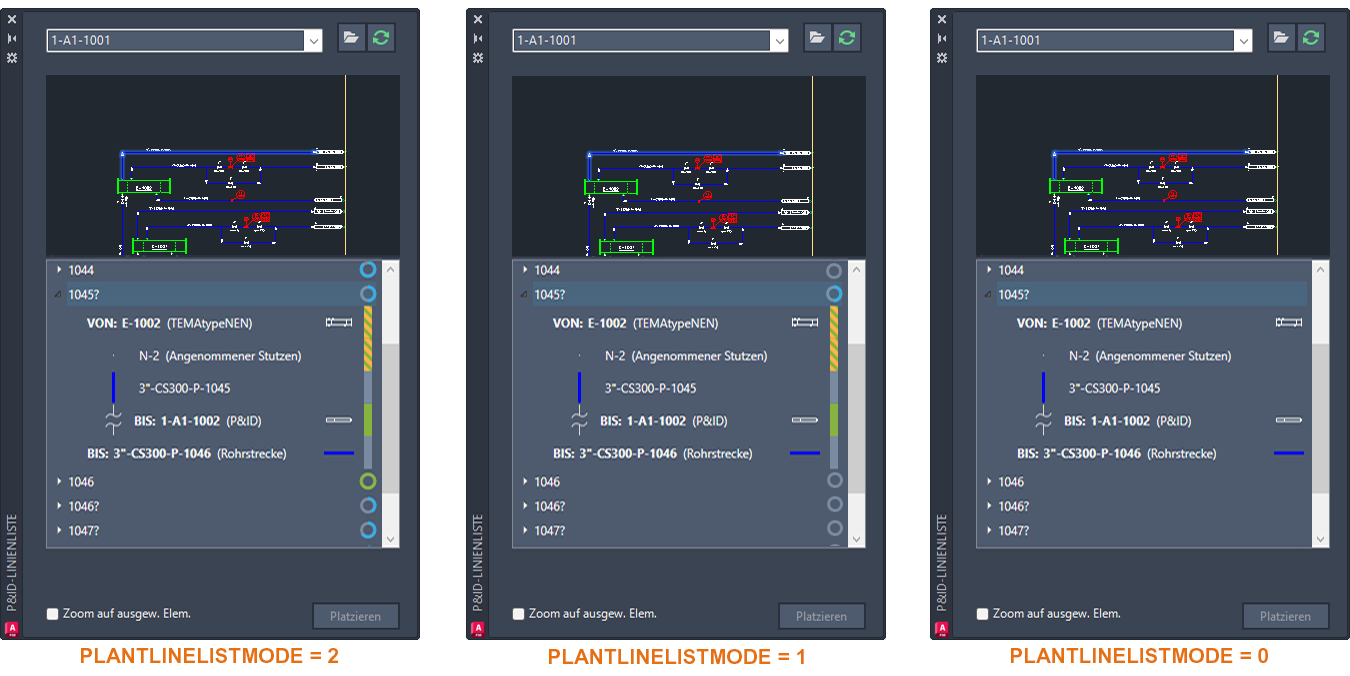 - Für eine bessere Leistung der P&ID-Modellierer-Vorschau wird dringend empfohlen, die Systemvariable PLANTLINELISTUSEGSF zu aktivieren, um den schnellen Schattierungsmodus zu aktivieren.