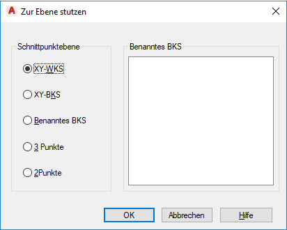Gibt an, dass die XY-Ebene des in AutoCAD definierten und gespeicherten benannten Benutzerkoordinatensystems als Schnittebene verwendet wird.