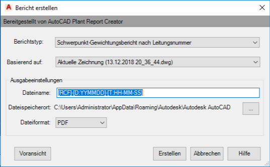 Dialogfeld Bericht erstellen