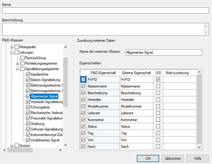 Ändert den Namen, die Beschreibung, die Auswahlen und die Zuordnungen für P&ID-Objekte und Eigenschaften.