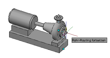 Fortsetzungsgriffe sind auch an offenen Anschlüssen und an Standard-Abzweigstellen verfügbar (z. B. in der Mitte eines Rohrsegments). Es erscheint kein Fortsetzungsgriff, wenn es sich bei dem Anschluss um eine XRef handelt oder wenn der Anschluss ausgehend von einer anderen Zeichnung als XRef verbunden wurde.