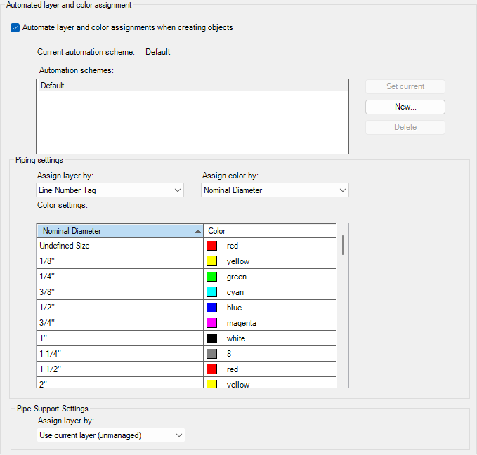 1. Erweitern Sie in der Strukturansicht Setup die Plant 3D-DWG-Einstellungen. Klicken Sie auf Layer- und Farbeinstellungen.