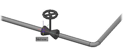 Wenn Sie bei Verwendung des Objektfangs Nächster die Meldung "Kein Endpunkt für den spezifizierten Punkt gefunden" sehen, können Sie die Öffnungsgröße erhöhen oder verkleinern. Zum korrekten Fangen muss das Objektfang-Zeichen Nächster sichtbar sein, wenn sich der Mauszeiger direkt über der Rohrmittellinie befindet.