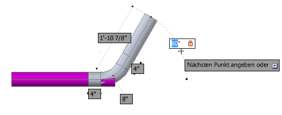 Rohrleitungsbogen unterstützen beim Routing die dynamische Eingabe.