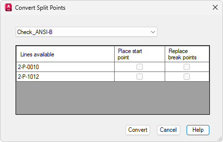 2. Klicken Sie auf die Option Teilungspunkte konvertieren. Das Dialogfeld Teilungspunkte konvertieren wird angezeigt.