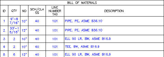 - Geben Sie die untere rechte Ecke an. Die Vorlage für die Ortho-Stücklistentabelle wird angezeigt.