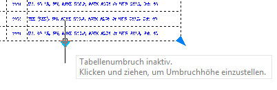 - Geben Sie eine Bruchstelle an (z. B. oberhalb einer Gruppenkopfzeile). Die Tabelle wird getrennt.
