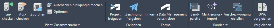 Einchecken. Ermöglicht das manuelle Einchecken einer neuen oder vorhandenen aktiven Zeichnung in der Cloud.