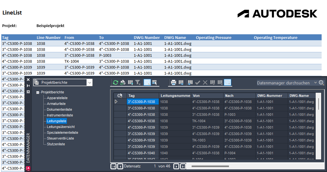 | (Der CAD-Administrator kann nach Bedarf in der Projektkonfiguration neue Berichte konfigurieren.) |