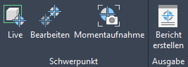 Sie können Schwerpunkt- und Gewichtsberichte direkt aus dem 3D-Modell erstellen. Report Creator muss installiert sein, um Schwerpunkt-Berichte zu erstellen.
