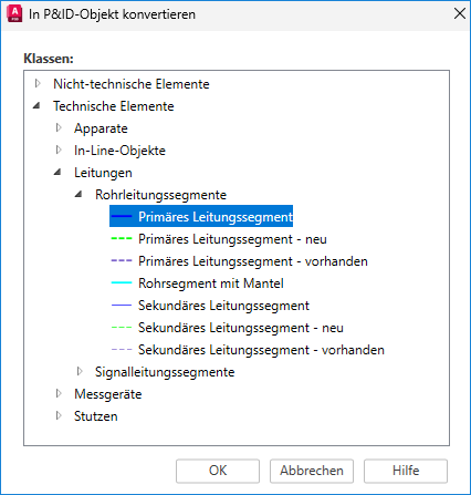 Konvertiert ein AutoCAD-Objekt in ein P&ID-Objekt.