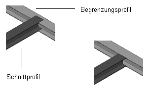 Mit der Option Eins ausschneiden wird ein Profil auf die Begrenzung eines anderen Profils ausgeschnitten. Mit der Option Beide ausschneiden werden zwei Profile auf die Begrenzungen des jeweils anderen Profils ausgeschnitten.