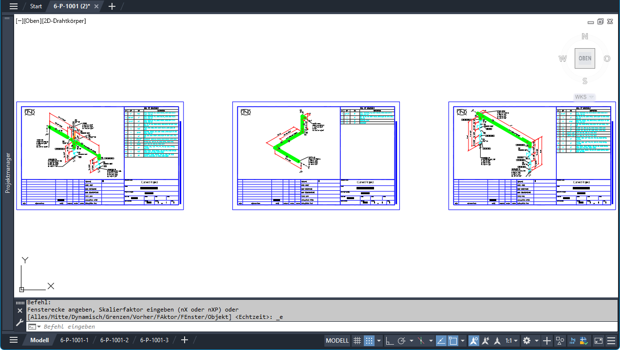 Für eine verbesserte ISO-Zeichnungsverwaltung wird empfohlen, ISO-Zeichnungen pro Leitung zu erstellen. Jeder ISO-Plan wird als separates Layout in der Zeichnung angezeigt, sodass Sie problemlos zwischen Layouts wechseln und ISO-Details überprüfen können.
