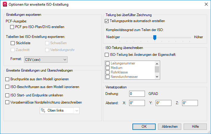 Legt die erweiterten Einstellungen für die Erstellung von ISO-Zeichnungen fest.