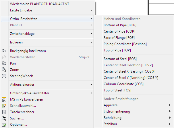 Klicken Sie im Ortho-Papierbereich in einer orthogonalen Zeichnung mit der rechten Maustaste im Ansichtsfenster, das die Komponente enthält, die Sie beschriften möchten, und wählen Sie Ortho-Beschriften.