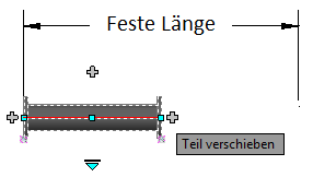- Klicken Sie auf ein Rohrsegment mit fester Länge. Klicken Sie an einem Ende des Rohrs auf den Griff Teil verschieben.
