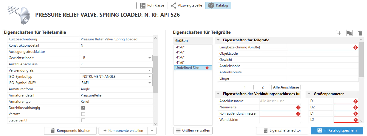 In einem Katalog können Sie Komponentenstandards, Materialeigenschaften, Größen, Bemaßungen und Verbindungsanschlusseigenschaften ändern. Sie können auch benutzerdefinierte Komponenten hinzufügen.