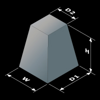 Ausrichtung Tiefe unten (D1) Tiefe oben (D2) Breite (W) Höhe (H) |