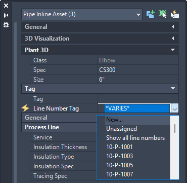 Wählen Sie in der Eigenschaftenpalette Plant 3D Tag Leitungsnummer-Tag.