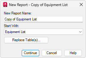 4. Geben Sie in das Dialogfeld Neuer Bericht einen Namen für den neuen Bericht ein (beispielsweise Neue Apparateliste).