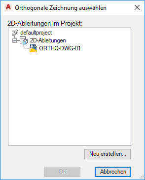 Dialogfeld Orthogonale Zeichnung wählen