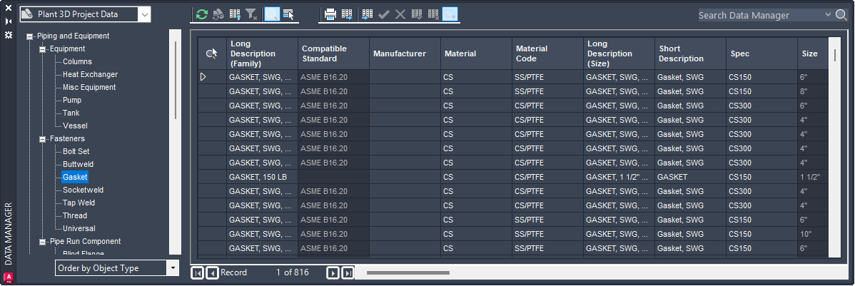 Der Datenmanager stellt ein Fenster für Ihre Plant-Daten zur Verfügung. Mithilfe des Datenmanagers können Sie Zeichnungen und Projektdaten anzeigen, ändern, exportieren und importieren sowie Berichte erstellen.