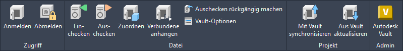 Weitere Informationen zu den Befehlen in der Multifunktionsleiste finden Sie in der Vault-Befehlsreferenz.